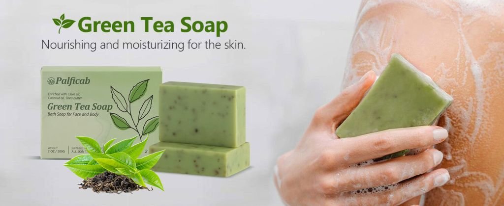 PALFICAB Green Tea Soap – Natural Vegan Bar with Shea Butter & Coconut Oil (2 Bars)