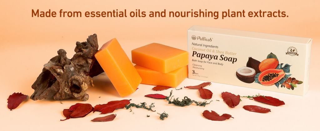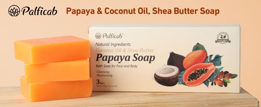 PALFICAB Papaya Soap – Exfoliating & Moisturizing Face & Body Bar (3 Bars + Net)